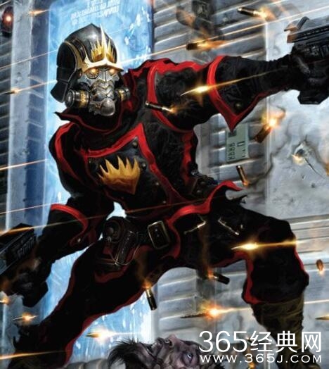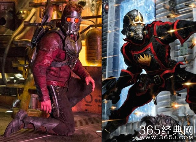 漫画中的星爵面具比电影中要骇人。而且整个人的装扮有一种复古日本武士的感觉,小图可能看得不是很清晰,美叔给大家放大一下看看: