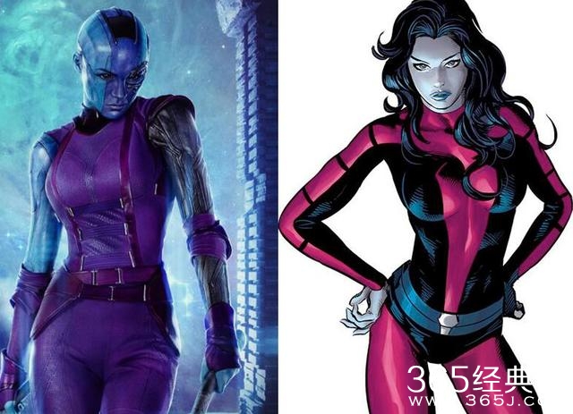 事实上,在《银河护卫队》电影系列中的卡魔拉穿着比漫画中要保守太多了,漫画中的卡魔拉自从出场开始,无论冬夏,都没穿过这么多: