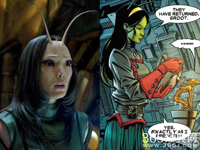 看样子电影《银河护卫队》的主创确实是一直避免在同一部电影中出现过多肤色相同的角色,在原著漫画中,螳螂女也是个绿皮人。另外,螳螂女也是复仇者联盟的成员,在2018年上映的《复仇者联盟3》中,螳螂女也有出镜。