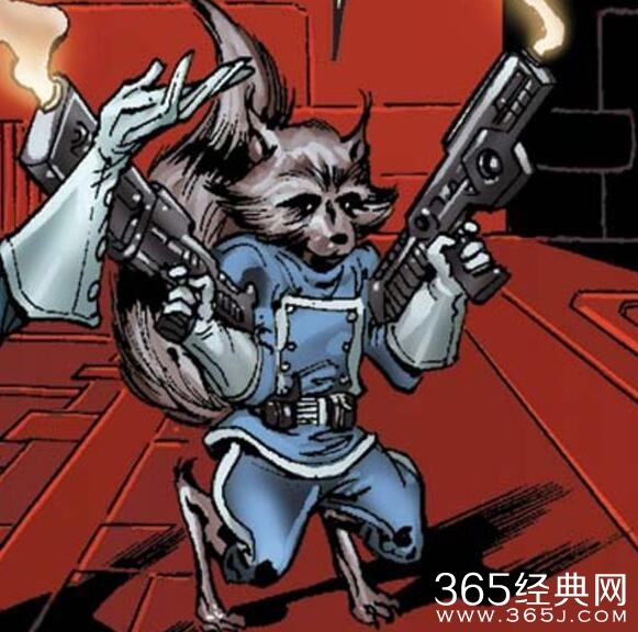 看,没有电影《银河护卫队2》中那种毛茸茸的感觉,就没有那么可爱了吧。火箭浣熊这个角色在电影中的改动不大,角色的来历与电影中所交代的基本上一致,也是受到星爵的征召之后加入了这个队伍。