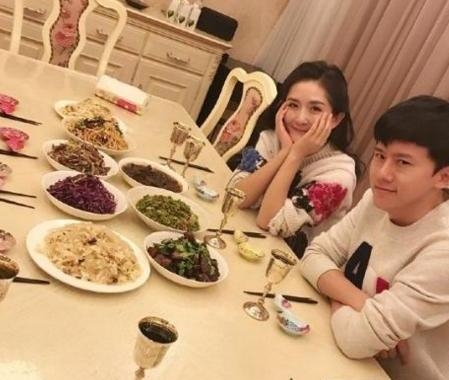 Baby和黄晓明两公婆跟老同学开party,桌上的菜都放满啦,不过这照片不像是吃完后拍的,你瞧,筷子都像是刚刚摆上来的,看来是还没开吃的时候拍的照片。