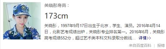 而关晓彤出道一直以大长腿的形象示人,她的身高是173cm....