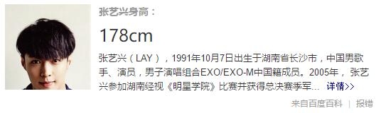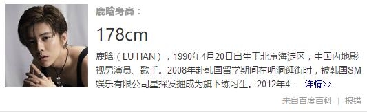 鹿晗和张艺兴两人的官方身高都是178cm。