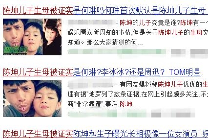 前几年的陈坤突然爆出了自己有一个儿子,而那个儿子已经很大了真的吓到一众人,而且优优生母也是猜测纷纷,从周迅猜到何琳再到李冰冰,几乎每个有可能的女明星都猜了个遍。