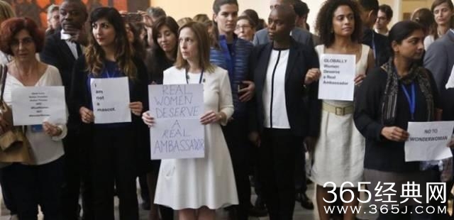 任命活动有数万名网友发起联名抗议,向联合国秘书长潘基文抗议:“这个角色现在已经变成巨胸、穿着暴露闪亮紧身装、身材比例不对,还露大腿的白种女性!”