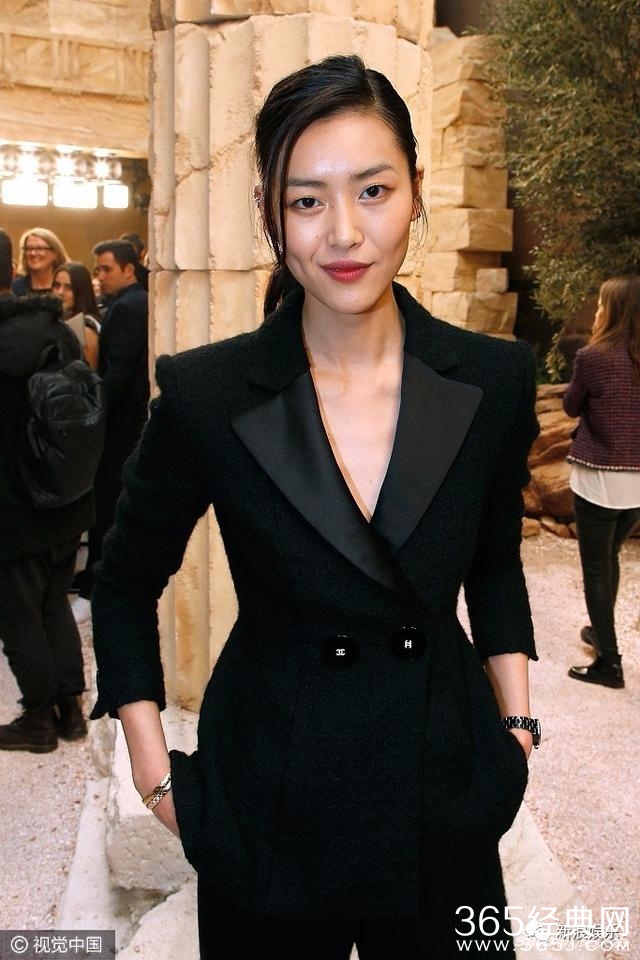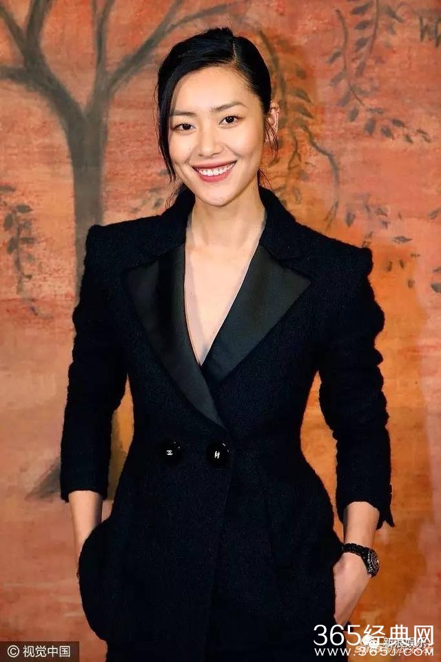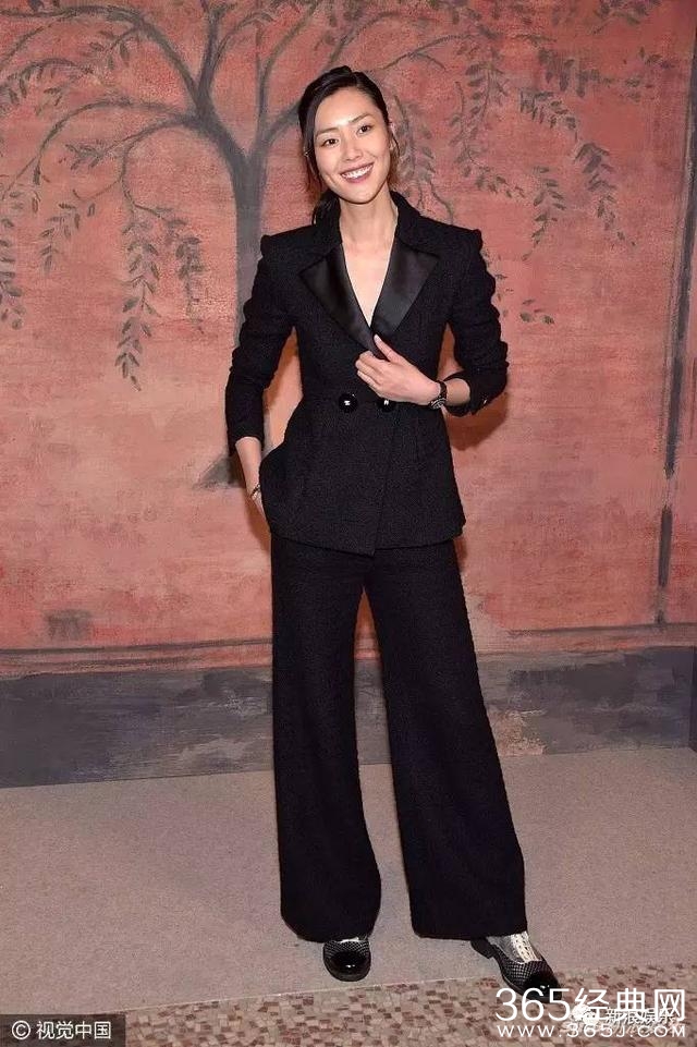刘雯,身穿黑色深V西装配阔腿裤,目光坚毅全身都是超模气质