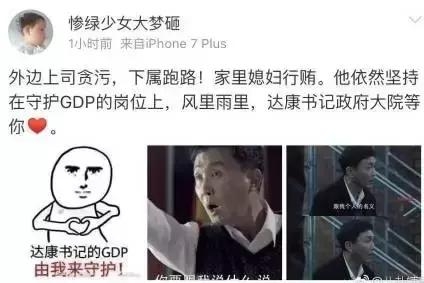 一时间网络上铺天盖地的全都是:“达康书记的GDP我们来守护~”“wuli汉东第一男模!”“萌萌哒背锅侠~”还有各种各样的表情包。