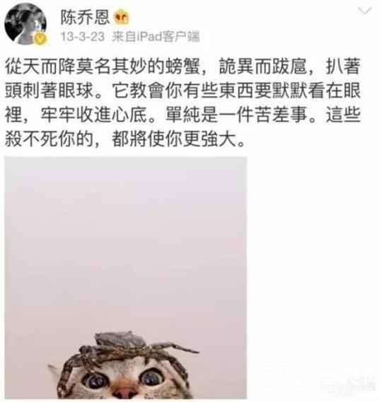 那件事之后,一直没有得到两人回答,随后,在2013年时,陈乔恩更新的一条深有意思的微博,似乎在暗示她与古天乐已经分手了。