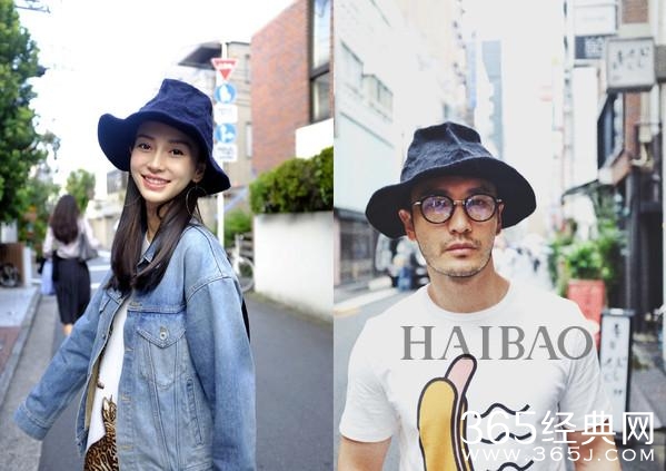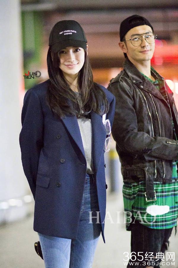 杨颖和黄晓明戴情侣棒球帽现身