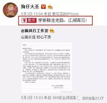 曾经被卓伟一手捧起来的@狗仔大圣,也转发了新风行的微博,看样子是跟着走了。