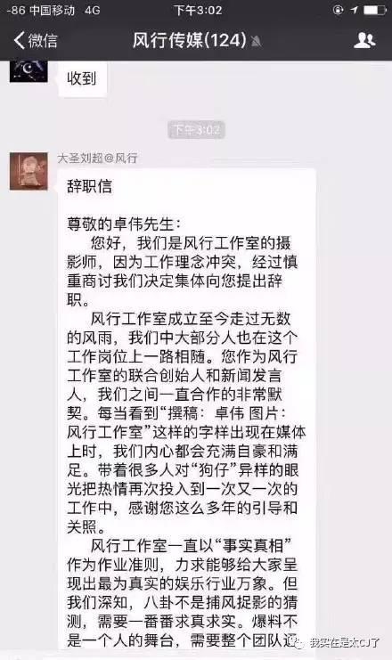 有人也放出了风行内部群截图,群内也有发给卓伟的辞职信,并不只是外界挑衅行为。