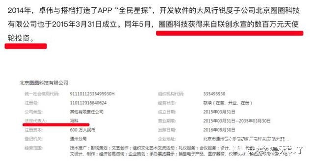 全明星探背后的圈圈科技,在2015年获得了天使投资,变成了资本裹挟下的产物。而且重点是,圈圈科技法人是冯科。