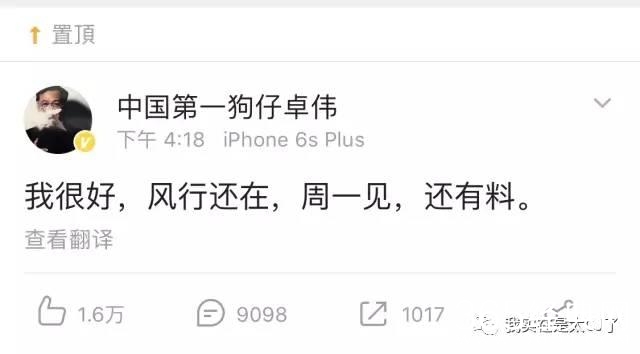 而卓伟这边只有一句,风行还在,自己还在,周一还有料。但这无援的置顶让他在历史的洪流中,更孤独了。