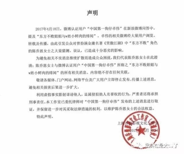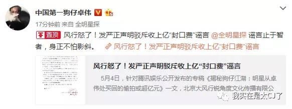 这件事引起卓伟的猛烈反击,他第一次发了声明怒斥谣言。看上去,颇有些风水轮流转的意味。