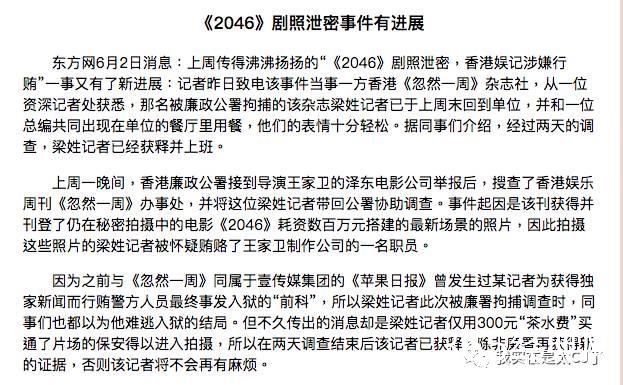 而这家报纸,还报道过《2046》独家揭秘,当时就已经是卓伟和冯科的搭档了。