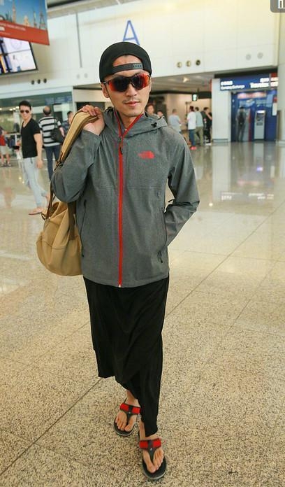 这样一种时尚在我们看来简直就跟农民工没两样了,但是呢却能引起时尚效应,这不谢霆锋的模仿很到位!