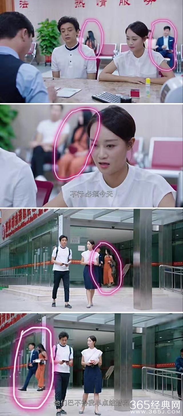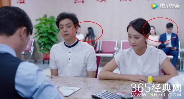 结果被眼尖的观众给发现剧情BUG了:领证的时候,后面的两对龙套演员,居然在两分钟内的剧情里,完成了从离婚到结婚的过程。。。