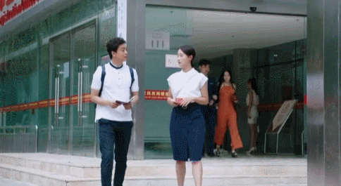 画面三:因为是龙套演员的缘故,所以当我们的男二女二领完结婚证之后,导演直接切了穿橙色裙子的女士和蓝色西装的男士牵手走出民政局的画面。
