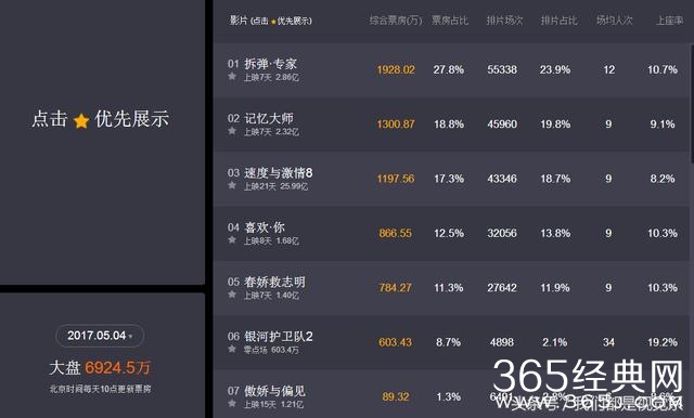 5.4号还不到7千万,拆弹专家也领跑日冠军,排片场次也有5万多场。