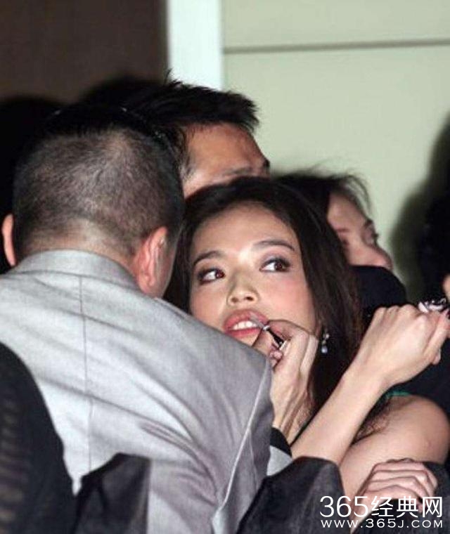 在人群堆中被化妆师临时补妆的舒淇表情有些呆萌,大嘴露出大板牙,眼神还不安分的四处溜转十分可爱。