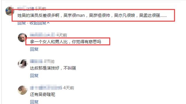 然而却意外看到网友评论的这么一句话,说:姓吴的演员反差很多,吴京很man,吴彦祖很帅,吴亦凡很娘,吴孟达很骚.....