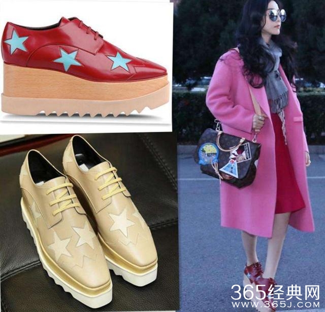 没错就是这双厚底鞋,这双鞋本就是小个子的福音,穿上它不用不仅可以凭空增高5厘米+,还不用像恨天高那样累人,像范冰冰这样气场强的人穿上也很搭。
