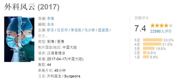 截至目前,《外科风云》豆瓣评分7.4分(图/豆瓣)