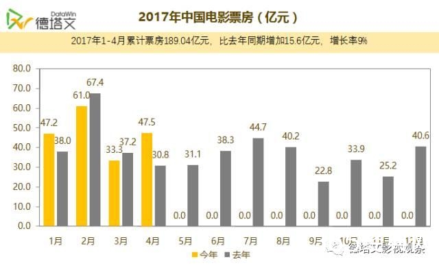 同比增长主要是由于去年四月大盘严重遇冷,而今年则有强势影片《速度与激情8》单月独得近24亿票房,拉动整体大盘增长。