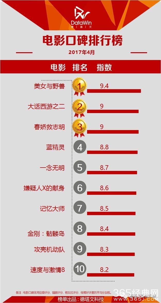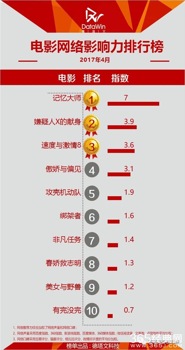 DataWin的影片网络影响力榜单,体现了观众对电影的肯定程度、和电影网络热议度,更能反映出大众口味,以及“自来水”幅度: