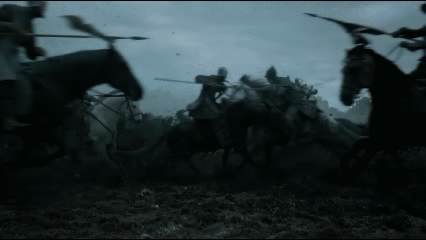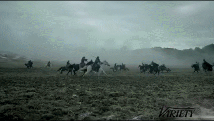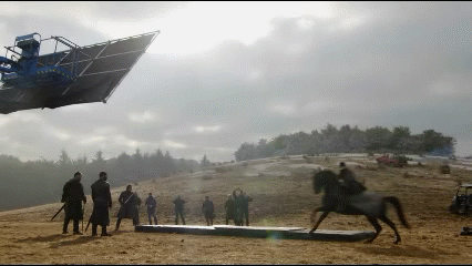 整个“黑水湾”一战的拍摄,用了200多名临演和替身,画面上表现出的千军万马,其实是以他们为基础、由电脑特效复制而成。比如结尾兰尼斯特援军总算来临时的镜头,现场其实只有13匹战马和临演实拍,最终潮水般的骑兵军团,都是电脑特效的功劳。