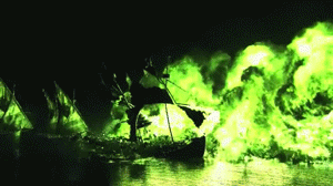 黑水河大战中最令人震撼的野火船爆炸的场景,最让人印象深刻,为了呈现出异常猛烈野火爆炸效果,特效部门精益求精,不放过最小的细节。首先,要参考真实世界中的爆炸,做出各种物理参数尽量逼真的火焰模型,具体到细节,火焰及气体翻滚的态势是基础,它定义了爆炸的规模与扩展的速度。