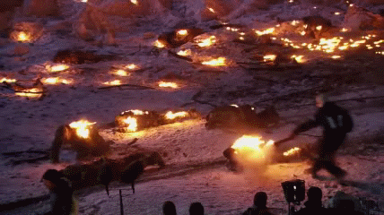针对野人部队强大的攻势,守夜人军团的防卫措施,简单而有效。其中有威力颇大的火油桶,从长城上扔下,被火箭引燃就会发生一场爆炸,杀伤力巨大。令人惊讶的是,如此威力的画面,居然是现场实拍。只能说,特技替身们的敬业精神,令人感叹。