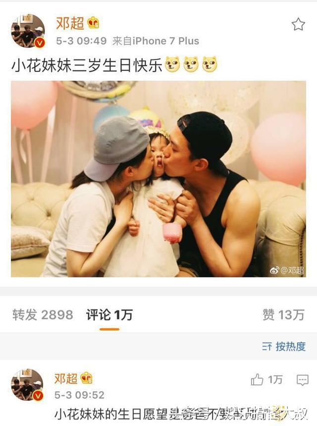 邓超还变相的夸自己帅哦~不过从之前夫妻的微博上,也只能看得到小花妹妹的侧脸