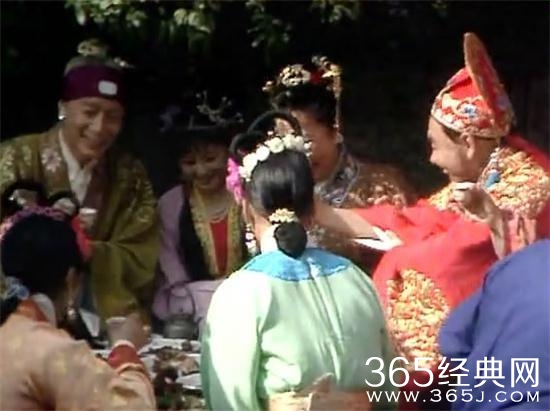 成亲这场戏,由于需要人的很多,剧组里连幕后工作人员上阵参演了。比如这个老太就是六小龄童演的。