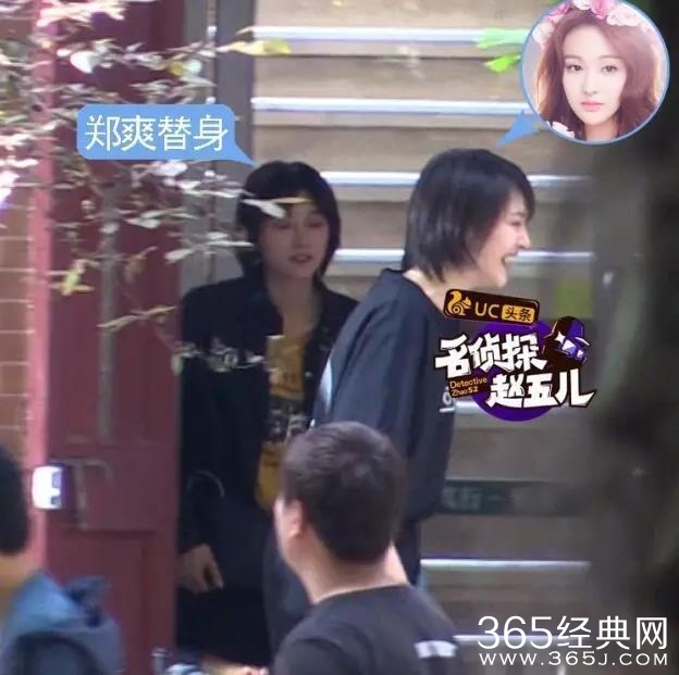 郑爽这两天在现场心情有点儿兴奋,哎呀这笑的。留意郑爽周围那个穿黑色衬衣的人,相同的身高和发型,长得也有些类似,可能是郑爽的替身。