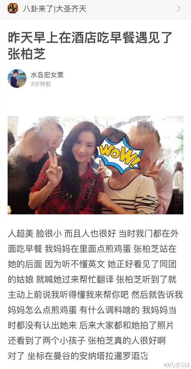 明星被偶遇的新闻里,张柏芝算是接地气的一个,没有架子笑容满满,还经常主动帮助遇到难题的同胞