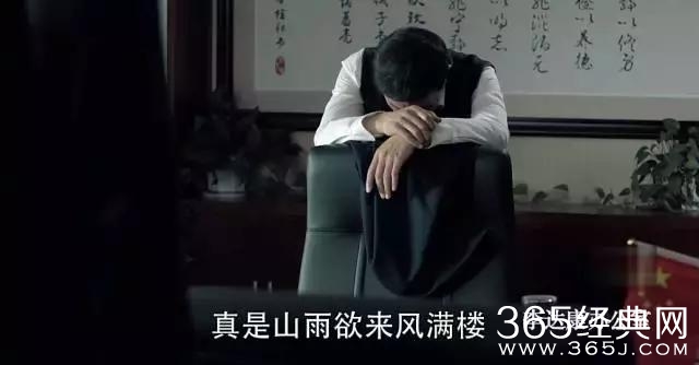 这场戏以李达康埋头垂手默念「真是山雨欲来风满楼啊」开场,一个近景推进,我们看到两名下属满脸凝重肃穆地向他汇报工作。