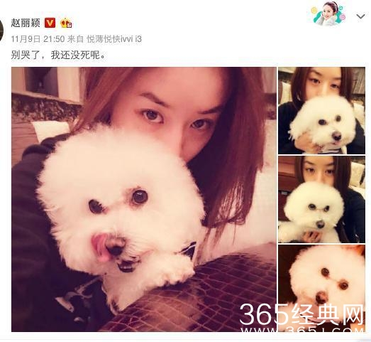 有一次,赵丽颖和它拍照的时候,看着毛球一脸的哭相,于是配文说:别哭了,我还没死呢!让网友大呼赵丽颖可爱!