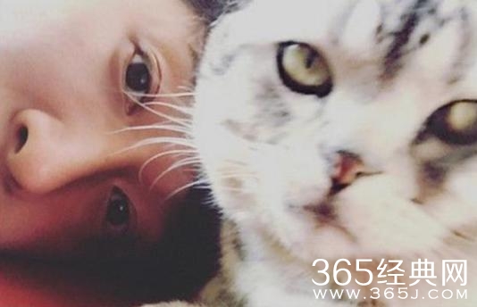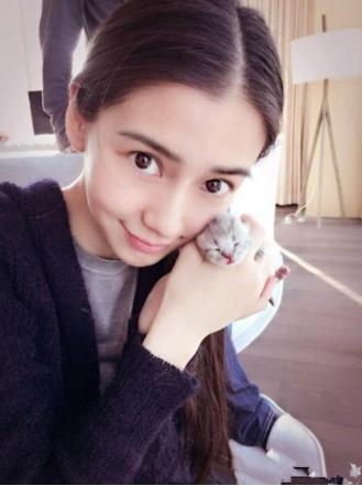 薛凯琪的猫咪小编怎么感觉和她张的很像呢~都是大眼睛,看起来十分有灵性哦!让猫咪上自己的床看来她很爱猫咪哦~
