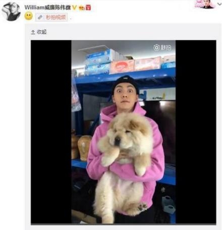 陈伟霆微博晒出自己与爱宠的合照,不过看起来他的松狮好像不是很喜欢他呀,一脸不情愿的拍照呢~