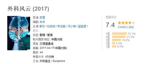 《外科风云》开播已经有一段时间了,豆瓣评分终于上到了7.4分,虽不及年度反腐剧《人民的名义》,但却完胜了正在热播的《择天记》,估计导演已经哭晕在厕所啦。