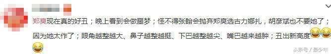 有网友还毒舌的说郑爽现在好丑,晚上看到了还会做噩梦,怪不得张翰抛弃郑爽选择了古力娜扎。。。。