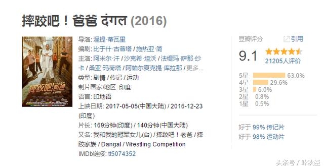 《三傻大闹宝莱坞》不如《三个傻子》,《摔跤吧!爸爸》不如《摔跤手》。