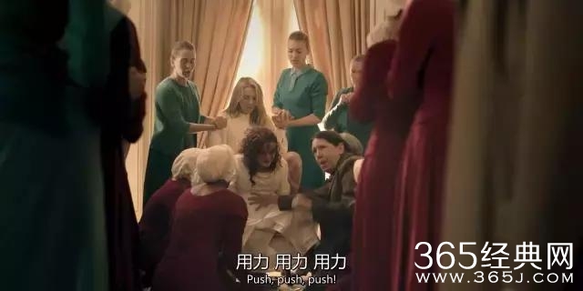 没有生育功能的夫人在舒适的房间模拟生产,使女则在另外一边努力等待孩子出生。