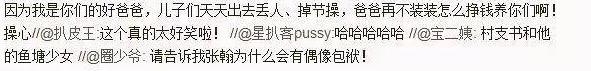 要说张翰情商低的表现,早前,微博不少人转发张翰剧照,吐槽他的乡土气息。结果张翰发飙转发微博,骂嘲笑他的人是他的儿子......还有张翰的粉丝发微博贬低其前女友郑爽,张翰竟然点了个赞!