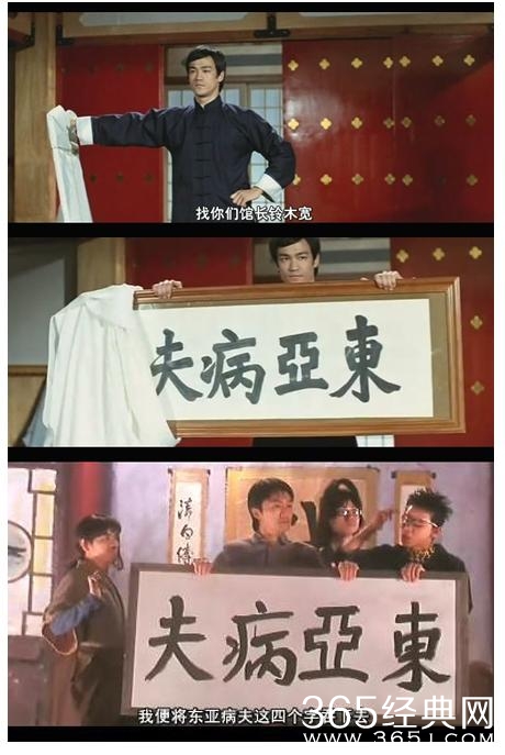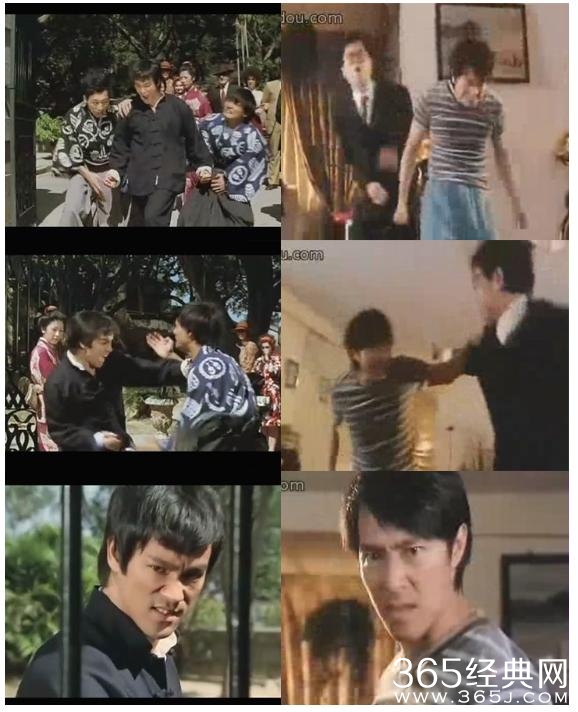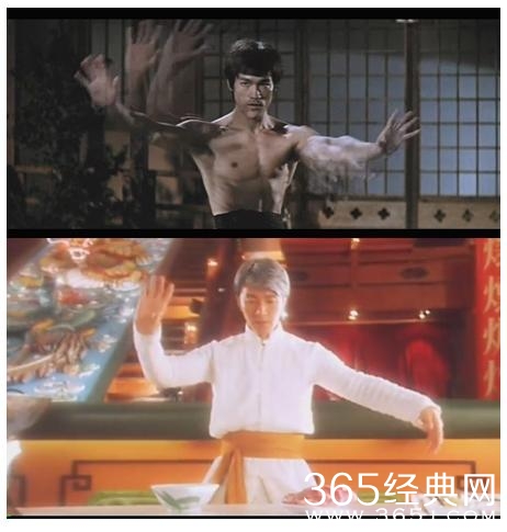 星爷在《喜剧之王》里面完全复制了李小龙《精武门》里面踢馆的片段,动作几乎是一模一样的。(当然只是搞笑版)