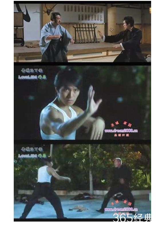 《功夫》海报上面星爷的这个动作最接近的,我感觉是《精武门》里面李小龙对日本武士的一个手势!