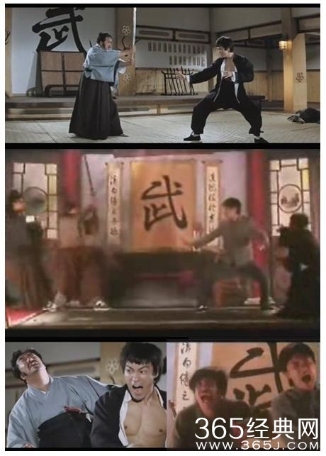 就是模仿李小龙《精武门》公园门口暴打小鬼子的片段