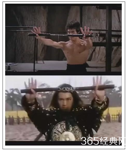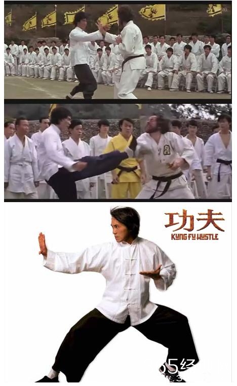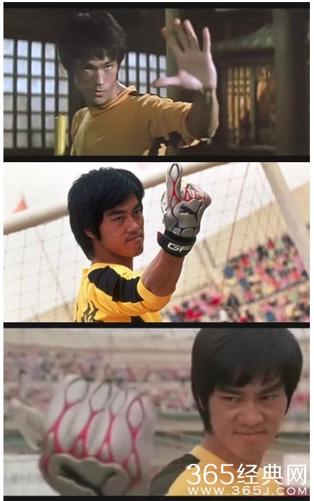 星爷《少林足球》海报上面的那个踢球动作,就是模仿了李小龙的控腿。