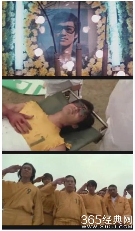 陈国坤在电影中身穿李小龙最经典的黄色连体服出现,而且外形动作都非常神似,